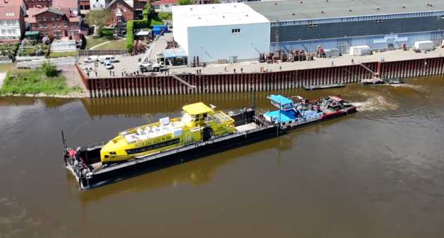 Komplettleistung des Fähranlegers von ca. 1.000 to mit einer Länge von 37 m und einer Breite von 28 m.