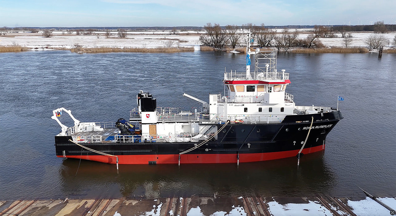 Das Ölfangschiff aus Tangermünde mit künftigem Heimathafen Wilhelmshaven wird später auf der Nordsee im Einsatz sein und zentrale Aufgaben im Küsten- und Gewässerschutz übernehmen. Im Auftrag des Niedersächsischen Landesbetriebs für Wasserwirtschaft, Küsten- und Naturschutz entsteht hier ein modernes Mehrzweckschiff für den Schutz unserer Küstengewässer.